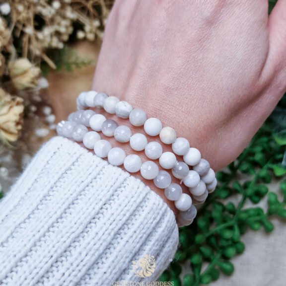 - Ze bevordert kalmte in je gedachten en helpt je om helder te blijven tijdens stressvolle momenten. Witte agaat ondersteunt het loslaten van innerlijke onrust en helpt je met een open en rustige blik naar situaties te kijken. Ze versterkt geduld, innerlijke stabiliteit en zelfvertrouwen, vooral bij gevoeligheid voor externe prikkels.