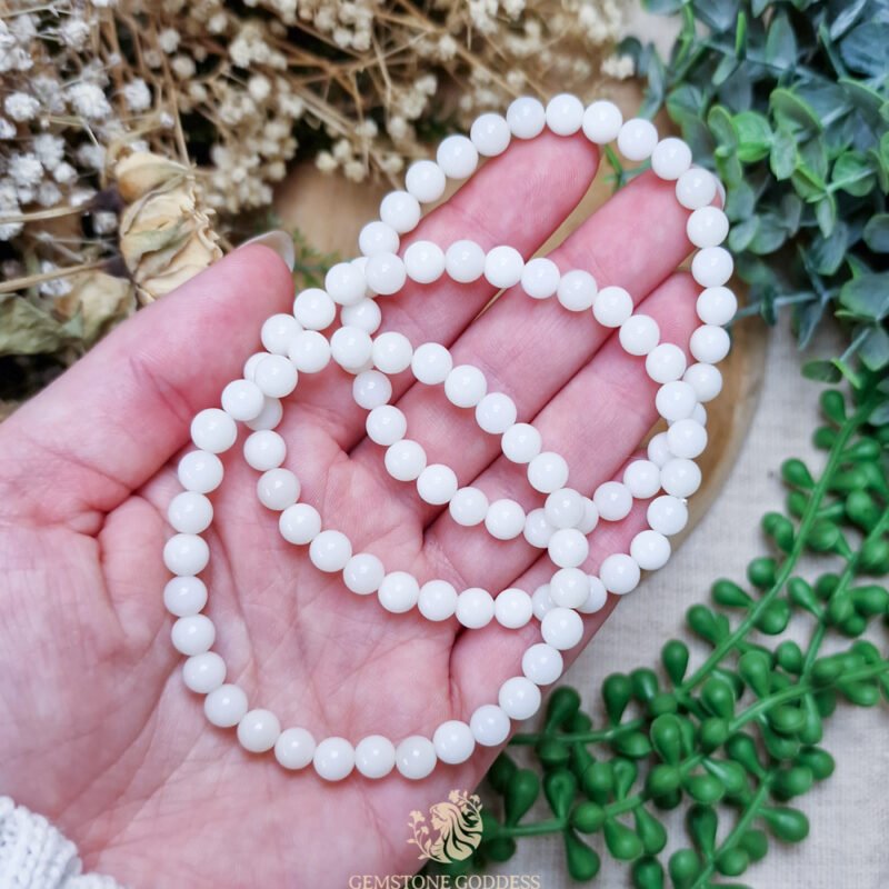 - Deze steen brengt rust in een overactieve geest. Ze helpt bij piekergedachten, slapeloosheid en mentale uitputting. Witte jade bevordert objectiviteit, geduld en harmonie in communicatie. Ze ondersteunt je om helder te denken zonder dat je hoofd overspoeld raakt.