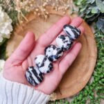 Zebra Jaspis is een steen van balans en doorzettingsvermogen. Zijn karakteristieke zwart-witte strepen symboliseren de harmonie tussen tegengestelde energieën, waardoor hij helpt om balans te vinden in lichaam, geest en emoties. Hij stimuleert een positieve mindset en helpt obstakels met vastberadenheid te overwinnen.